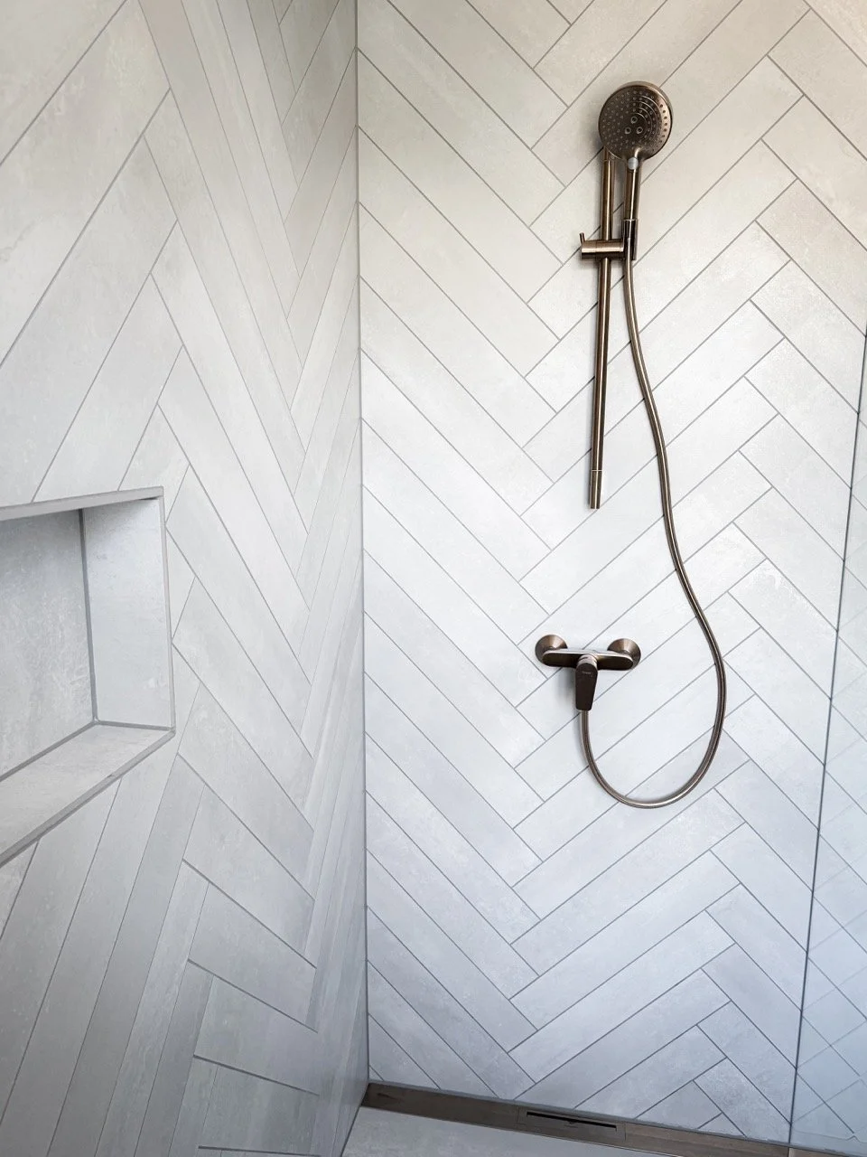Mit wenigen Fugen entstehen ruhige, moderne Flächen – perfekt für bodengleiche Duschen, Küchenrückwände oder Wohnbereiche.